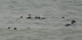 The female King Eider re-appeared at the original spot close to Castlegregory this morning and looked right at home with the local Red-breasted Mergansers for a time. However, it didn't come close inshore for pretty much the whole day and by sunset was alone again well over a kilometre offshore. If you go to see it, bring your 60x eyepiece for the telescope. Might need a lot of luck to see it close in.